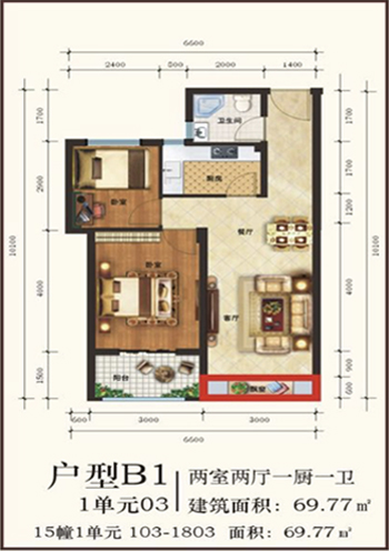69㎡ 两室两厅一厨一卫