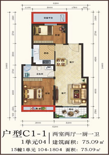 75㎡两室两厅一厨一卫