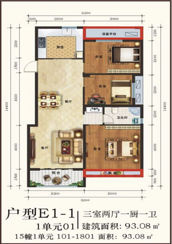 93㎡ 三室两厅一厨一卫