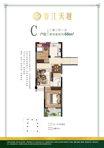 C户型 二室二厅二卫 66m²